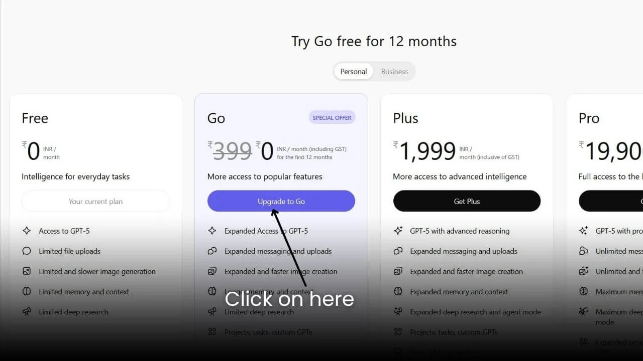 Now, let’s see how you can claim your free ChatGPT Go subscription.
